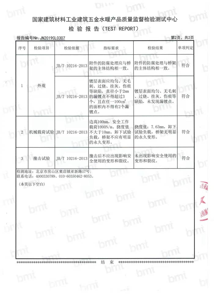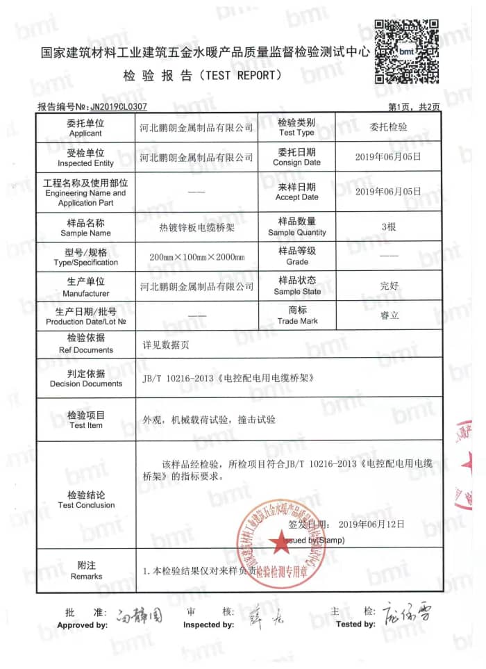 鍍鋅電纜橋架檢測報告_河北鵬朗金屬制品有限公司